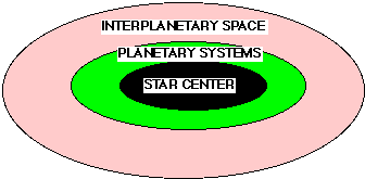 The order region (complexity 2) of the solar system encompasses the interstellar space affected by gravitation of the mass of the sun. This order regime surrounds the chaotic region centered in the sun. The order region (complexity 2) contains atoms wherever particular regions of mass that are not part of the sun and small enough and far enough away from the center of the sun to cool below nuclear reaction temperatures.