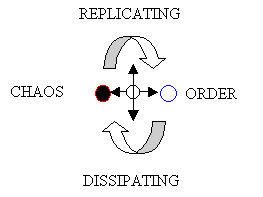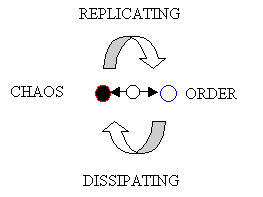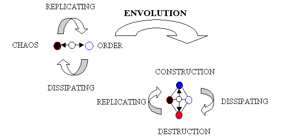 Syntactically there is very little difference between the two metaphors, entropy and evolution – they are simple models, to a degree mirror images of each other. So a more complete metaphor would be to combine the two models of Clausius and Darwin to form a replicative/dissipative structure.