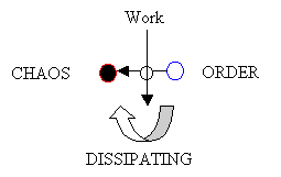 The other major scientific metaphor, in some sense opposite of evolution, is the second law of thermodynamics. It is asserted that it governs all of matter; however, this metaphor assumes an “isolated” or “closed” system, which cannot be the case with the universe – the universe is not in equilibrium. In fact, pure equilibrium does not exist – all “equilibriums” must be dynamic, or in some metaphoric sense, living. Clausius’s metaphor is in reality a model of death and decay. A simplified model of entropy is the following: