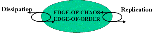 The edge-of-chaos metaphor and it associated mathematical and computational methods Mitchell (1994), and Langton (1990) is useful in describing massive dissipative/replicative structures. Every massive dissipative/replicative structure is on some edge-of-chaos, and some structures are part of multiple levels of edge-of-chaos. A large part of the edge-of-chaos metaphor involves both a macro-process and a macro-structure. But also it includes micro-structures and micro-processes. The combination of macro-process, macro-structure, micro-processes, and micro-structures will be the basis for the metaphor.